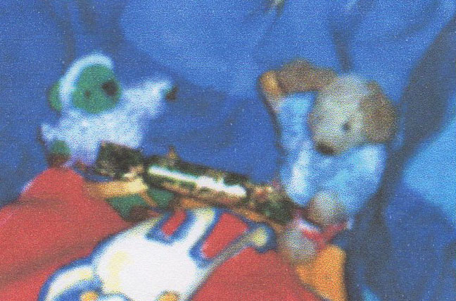 We always got very excited if we came across clothes in shops that were the right sizes for our mascots. I remember buying small bears or dolls sometimes simply to take their clothes off and use them for my mascot. Below you can see that 'Mittens' is wearing a lilac jumper. We went into the wool shop in town and managed to get the lady in there to knit us some mini jumpers. She charged us 50p! And she made four of them! 'Emerald' is wearing a blue and red jumper with a white star on it. This was from the dollshouse shop in town which has sadly closed down now. It was such a great shop! Henrietta and I used to walk down there nearly every week to go and look at all the stuff and see if there was anything we could afford for our mascots. We bought a lot of stuff from that shop. In the end the lady who owned it actually allowed me to make some things to sell in the shop myself. She was a nice lady, kind of scary at first but when we got to know her I think she liked us. She died which is why the shop was closed down.It was especially sad because it was such an interesting shop. It didn't just have the generic kind of dollshouse stuff in it, it had unique things in it made by local people.