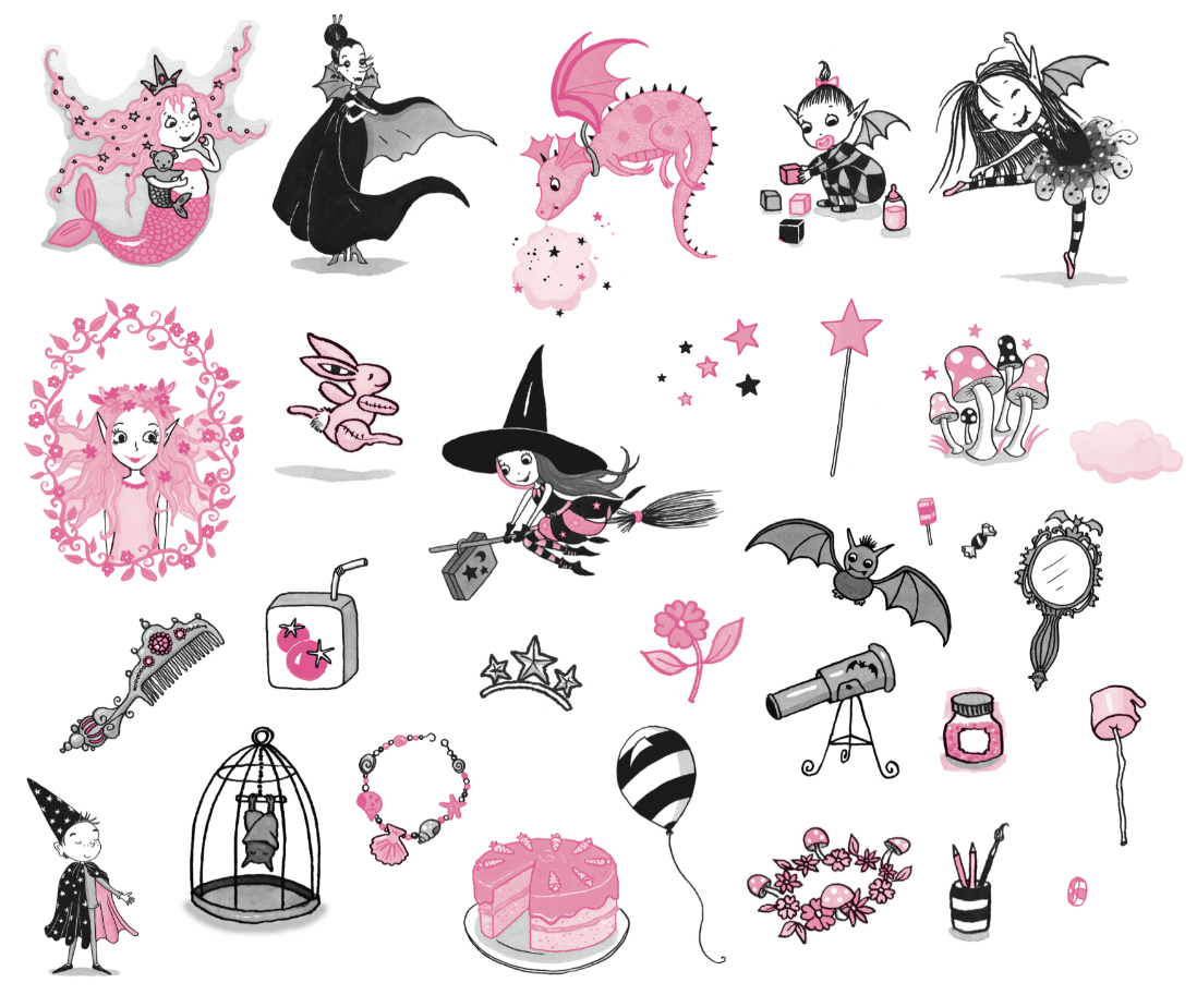 Just for interest, here is my rough version of the cover for Isadora Moon gets in Trouble against the final version: