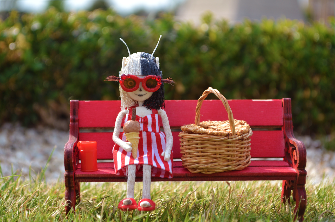 Once I had painted the box I gave it lots of layers of yacht varnish so that it would be waterproof. My next thing was to find some sort of base to sink the box into. I bought a big cheap photo frame and used the board at the back of it. I cut a rectangle into the piece of board stuck the box into it with loads of hot glue. For the tiles I went to the pound shop and bought a four pack of plastic lino tiles. They were actually wood effect tiles but I knew that if I cut the tiles small enough, it wouldn't look like wood but just nice warm coloured outdoor tiling. It was easy to cut the lino as you just have to score a line down it with a craft knife and then you can actually snap it off in strips and squares. I stuck the squares down with PVA glue, leaving little gaps between each square so that I could put grouting between them. It was quite fun doing the grouting! I reinforced the underside of the pool by sticking beams of wood along the edges and this also served as somewhere to stick the fencing onto. The fencing was made from lolly sticks which I already had lying around. And then that was it! My pool was made.